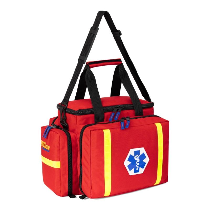 Na zewnątrz torba wyposażona jest w liczne kieszenie i mocne zamki, a także wygodne uchwyty i regulowany pasek na ramię. Intensywnie czerwony kolor, odblaskowe elementy oraz charakterystyczny krzyż św. Andrzeja zapewniają świetną widoczność nawet w słabym oświetleniu. Wytrzymałość, funkcjonalność i dopracowane detale sprawiają, że torba reanimacyjna Cordura to niezastąpiony element wyposażenia każdego profesjonalnego ratownika.